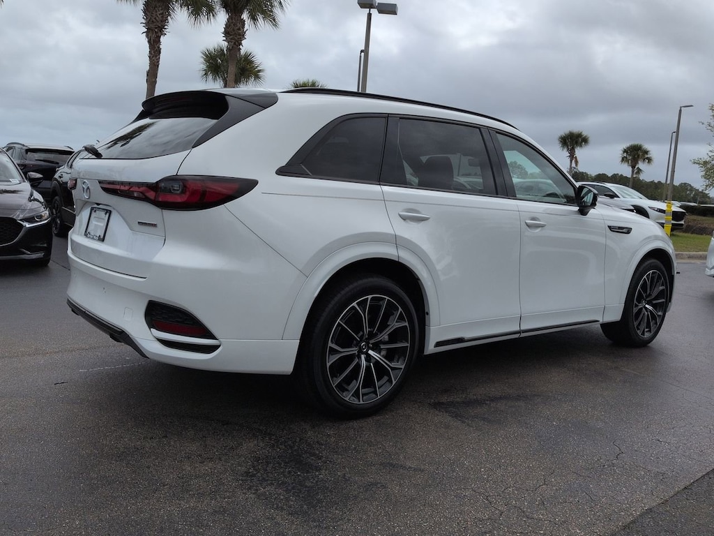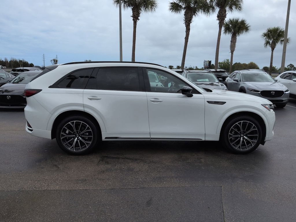 This 2025 Mazda CX-70 features Mazda Certified Pre-Owned Certified, 12 Speakers, 4-Wheel Disc Brakes, ABS brakes, Air Conditioning, Alloy wheels, AM/FM radio: SiriusXM, Auto High-beam Headlights, Auto-dimming door mirrors, Auto-dimming Rear-View mirror, Automatic temperature control, Brake assist, Bumpers: body-color, Cargo Net, Compass, Crossbars in Black, Delay-off headlights, Driver door bin, Driver vanity mirror, Dual front impact airbags, Dual front side impact airbags, E911 Automatic Emergency Notification, Electronic Stability Control, Emergency communication system: MAZDA CONNECT, Four wheel independent suspension, Front anti-roll bar, Front Bucket Seats, Front Center Armrest w/Storage, Front dual zone A/C, Front reading lights, Fully automatic headlights, Garage door transmitter: HomeLink, Heads-Up Display, Heated door mirrors, Heated front seats, Heated rear seats, Heated steering wheel, Heated/Ventilated Front Bucket Seats, Illuminated entry, Infotainment System Voice Command, Knee airbag, Leather Shift Knob, Leather steering wheel, Low tire pressure warning, Mazda Connected Services, Mazda Online Navigation, Memory seat, Nappa Leather Seat Trim, Navigation system: MAZDA CONNECT, Occupant sensing airbag, Outside temperature display, Overhead airbag, Overhead console, Pandora Internet Radio Integration, Panic alarm, Passenger door bin, Passenger vanity mirror, Power door mirrors, Power driver seat, Power Liftgate, Power moonroof, Power passenger seat, Power steering, Power windows, Radio Broadcast Data System Program Information, Radio data system, Radio: AM/FM w/Bose Premium Audio Sound System, Rain sensing wipers, Rear air conditioning, Rear anti-roll bar, Rear reading lights, Rear seat center armrest, Rear window defroster, Rear window wiper, Remote keyless entry, Rhodium White Premium Paint Charge, Security system, SMS Text Msg Audio Delivery & Reply, Speed control, Speed-sensing steering, Split folding rear seat, Spoiler, Steering wheel memory, Steering wheel mounted audio controls, Tachometer, Telescoping steering wheel, Tilt steering wheel, Traction control, Trip computer, Turn signal indicator mirrors, Variably intermittent wipers, Ventilated front seats, and Wheels: 21" x 9.5J Aluminum Alloy. *Pricing Disclaimer: All prices do not include tax, tag, e-tag fee ($389) or dealer fee ($899.50) or dealer add-ons. Pricing includes $1,000 Trade Assist and $1,000 Finance Assist and does not include reconditioning. Customer must trade-in a vehicle to receive $1,000 Trade Assist Credit. Trade Assist credit is provided by this dealership and not all trades qualify for savings. *Financing must be provided by a lender using this dealership's assistance to receive the $1,000 Finance Assist Credit. See Dealer for complete details. All of our vehicles are ASE Certified inspected so you can buy with confidence from Daytona Mazda. Proudly serving Daytona Beach, Palm Coast, Port Orange, Deland, Deltona and beyond, there are numerous reasons to choose Daytona Mazda.