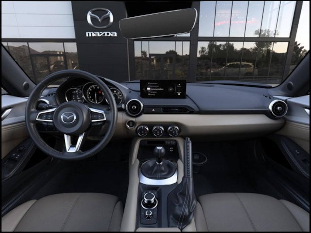 This vehicle includes a Lifetime Limited Non-Factory Powertrain Warranty and includes the following Features & Options: 4-Wheel Disc Brakes, 9 Speakers, ABS brakes, Aero Gray and Tan Nappa Leather Charge, Air Conditioning, Alloy wheels, AM/FM radio: SiriusXM, AppLink/Apple CarPlay and Android Auto, Auto High-beam Headlights, Auto-dimming door mirrors, Auto-dimming Rear-View mirror, Automatic temperature control, Black Lug Nuts and Black Wheel Locks, Brake assist, Bumpers: body-color, Cargo Net, Convertible roof lining, Convertible roof wind blocker, Delay-off headlights, Driver vanity mirror, Dual front impact airbags, Dual front side impact airbags, Electronic Stability Control, Emergency communication system: MAZDA CONNECT, Exterior Parking Camera Rear, Four wheel independent suspension, Front anti-roll bar, Front Bucket Seats, Front Center Armrest, Fully automatic headlights, Garage door transmitter: HomeLink, Glass rear window, Heated door mirrors, Heated Front Bucket Seats, Heated front seats, Illuminated entry, Leather Shift Knob, Leather Upholstery, Low tire pressure warning, MAZDA CONNECT Infotainment System, Nappa Leather Upholstery, Navigation System, Occupant sensing airbag, Outside temperature display, Panic alarm, Passenger vanity mirror, Power door mirrors, Power steering, Power windows, Radio data system, Radio: Bose Audio System with Audiopilot, Rain sensing wipers, Rear anti-roll bar, Rear window defroster, Remote keyless entry, Speed control, Speed-sensing steering, Sport steering wheel, Steering wheel mounted audio controls, Tachometer, Telescoping steering wheel, Tilt steering wheel, Traction control, Trip computer, Variably intermittent wipers, and Wheels: 17 x 7 Aluminum Alloy with Black Metallic Finish.