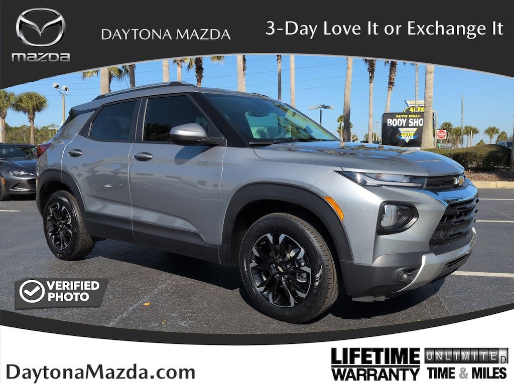 This 2023 Chevrolet TrailBlazer features Confidence II Package (Rear Park Assist), Convenience Package (1 Type-A & 1 Type-C USB Charging-Only Ports, 120-Volt Power Outlet, 8" Diagonal Color Touchscreen Display, Cabin Humidity Sensor, Driver & Front Passenger Illuminated Vanity Mirrors, Inside Rear-View Auto-Dimming Mirror, and Single-Zone Auto Climate Control Air Conditioning), Preferred Equipment Group 1LT, 2-Way Adjustable Front Head Restraints, 2-Way Power Driver Lumbar Seat Adjuster, 3.17 Axle Ratio, 4-Way Manual Front Passenger Seat Adjuster, 4-Wheel Disc Brakes, 6 Speakers, 6-Speaker Audio System Feature w/Amplifier, 7" Diagonal Color Touchscreen, 8-Way Power Driver Seat Adjuster, ABS brakes, Air Conditioning, Alloy wheels, AM/FM radio: SiriusXM, Auto High-beam Headlights, Brake assist, Bumpers: body-color, Cloth Seat Trim, Compass, Delay-off headlights, Driver door bin, Driver vanity mirror, Dual front impact airbags, Dual front side impact airbags, Electronic Stability Control, Emergency communication system: OnStar and Chevrolet connected services capable, Exterior Parking Camera Rear, Flat-Folding Front Passenger Seatback, Front anti-roll bar, Front Bucket Seats, Front Center Armrest, Front fog lights, Front License Plate Bracket, Front reading lights, Front wheel independent suspension, Fully automatic headlights, Heated door mirrors, Heated Driver & Front Passenger Seats, Heated front seats, Illuminated entry, Knee airbag, Low tire pressure warning, Not Equipped w/Rear Park Assist, Occupant sensing airbag, Overhead airbag, Overhead console, Panic alarm, Passenger door bin, Passenger vanity mirror, Power door mirrors, Power driver seat, Power steering, Power windows, Radio data system, Radio: Chevrolet Infotainment 3 System, Rear side impact airbag, Rear window defroster, Rear window wiper, Remote keyless entry, Ride & Handling Suspension, Security system, SiriusXM Radio, Speed control, Split folding rear seat, Spoiler, Steering wheel mounted audio controls, Tachometer, Telescoping steering wheel, Tilt steering wheel, Traction control, Trip computer, Variably intermittent wipers, Wheels: 17" High Gloss Black Machined Aluminum, and Wireless Apple CarPlay/Android Auto. *Pricing Disclaimer: All prices do not include tax, tag, e-tag fee ($389) or dealer fee ($899.50) or dealer add-ons. Pricing includes $1,000 Trade Assist and $1,000 Finance Assist and does not include reconditioning. Customer must trade-in a vehicle to receive $1,000 Trade Assist Credit. Trade Assist credit is provided by this dealership and not all trades qualify for savings. *Financing must be provided by a lender using this dealership's assistance to receive the $1,000 Finance Assist Credit. See Dealer for complete details. All of our vehicles are ASE Certified inspected so you can buy with confidence from Daytona Mazda. Proudly serving Daytona Beach, Palm Coast, Port Orange, Deland, Deltona and beyond, there are numerous reasons to choose Daytona Mazda.