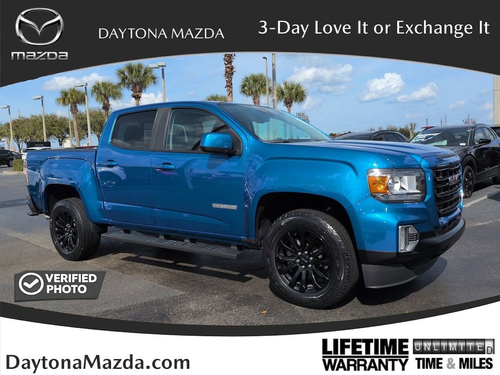 This 2022 GMC Canyon features Driver Alert Package (Forward Collision Alert, Lane Departure Warning System, and Ultrasonic Rear Parking Assist), Elevation Premium Package (Heated Driver & Front Passenger Seats, Heated Steering Wheel, Leather-Appointed Seat Trim, and Power Driver Lumbar Control Seat Adjuster), Preferred Equipment Group 2LE, Trailering Package, 2 USB Data Ports, 4-Wheel Disc Brakes, 5" Rectangular Black Assist Steps (LPO) (DISC), 6 Speakers, 6-Speaker Audio System Feature, ABS brakes, Air Conditioning, Alloy wheels, AM/FM radio: SiriusXM, Apple CarPlay/Android Auto, Auto-dimming Rear-View mirror, Automatic Locking Rear Differential, Automatic temperature control, Bose Premium 7-Speaker Audio System Feature, Bumpers: body-color, Cloth Seat Trim, Compass, Delay-off headlights, Driver 6-Way Power Seat Adjuster, Driver door bin, Driver Instrument Information Enhanced Display, Driver vanity mirror, Dual front impact airbags, Dual front side impact airbags, Electronic Stability Control, Emergency communication system: OnStar and GMC Connected Services capable, Exterior Parking Camera Rear, Front anti-roll bar, Front Bucket Seats, Front Center Armrest, Front fog lights, Front reading lights, Front wheel independent suspension, Fully automatic headlights, HD Radio, HD Rear Vision Camera, Heated door mirrors, Hitch Guidance, Illuminated entry, Low tire pressure warning, Occupant sensing airbag, Outside temperature display, Overhead airbag, Overhead console, Panic alarm, Passenger door bin, Passenger vanity mirror, Power door mirrors, Power driver seat, Power steering, Power windows, Premium audio system: GMC Infotainment System, Radio data system, Radio: AM/FM w/8" Diagonal Color Touch-Screen, Radio: AM/FM w/8" Diagonal Multi-Touch Display Nav, Rear reading lights, Rear seat center armrest, Rear step bumper, Rear window defroster, Remote keyless entry, Security system, SiriusXM Radio, Speed control, Speed-sensing steering, Steering wheel mounted audio controls, Tachometer, Telescoping steering wheel, Tilt steering wheel, Tow/Haul Mode, Traction control, Trip computer, Variably intermittent wipers, and Wheels: 18" x 8.5" Black Painted Aluminum. *Pricing Disclaimer: All prices do not include tax, tag, e-tag fee ($389) or dealer fee ($899.50) or dealer add-ons. Pricing includes $1,000 Trade Assist and $1,000 Finance Assist and does not include reconditioning. Customer must trade-in a vehicle to receive $1,000 Trade Assist Credit. Trade Assist credit is provided by this dealership and not all trades qualify for savings. *Financing must be provided by a lender using this dealership's assistance to receive the $1,000 Finance Assist Credit. See Dealer for complete details. All of our vehicles are ASE Certified inspected so you can buy with confidence from Daytona Mazda. Proudly serving Daytona Beach, Palm Coast, Port Orange, Deland, Deltona and beyond, there are numerous reasons to choose Daytona Mazda.