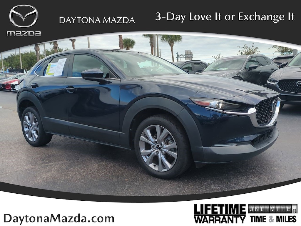 This 2020 Mazda CX-30 features Preferred Package (Blind Spot Monitoring w/Rear Cross Traffic Alert, Dual-Zone Automatic Climate Control System, Exterior Mirrors w/Memory Positioning, Front Grille Black Gloss Paint, Gloss Painted Speaker Grille, Illuminated Vanity Mirrors, Leather-Wrapped Steering Wheel & Gear Shift Knob, Mazda Advanced Keyless Entry, Overhead Console w/Sunglass Holder, Rear Privacy Glass, Rear Seat Armrest w/Cupholders, Shark Fin Antenna, and Side Mirror Turn Lamps), 12 Speakers, 18" x 7J Alloy Wheels, 3.626 Axle Ratio, 4-Wheel Disc Brakes, ABS brakes, Air Conditioning, Alloy wheels, AM/FM radio: SiriusXM, AppLink/Apple CarPlay and Android Auto, Auto High-beam Headlights, Automatic temperature control, Brake assist, Bumpers: body-color, Compass, Delay-off headlights, Driver door bin, Driver vanity mirror, Dual front impact airbags, Dual front side impact airbags, Electronic Stability Control, Emergency communication system: MAZDA CONNECT, Exterior Parking Camera Rear, Front anti-roll bar, Front Bucket Seats, Front Center Armrest, Front dual zone A/C, Front reading lights, Front wheel independent suspension, Fully automatic headlights, Heated Front Bucket Seats, Heated front seats, Illuminated entry, Knee airbag, Leather Shift Knob, Leather steering wheel, Leatherette Seat Trim, Low tire pressure warning, MAZDA CONNECT Infotainment System Voice Command, Memory seat, Occupant sensing airbag, Outside temperature display, Overhead airbag, Overhead console, Panic alarm, Passenger door bin, Passenger vanity mirror, Power door mirrors, Power driver seat, Power steering, Power windows, Radio data system, Radio: AM/FM Audio System, Rain sensing wipers, Rear seat center armrest, Rear window defroster, Rear window wiper, Remote keyless entry, Speed control, Speed-sensing steering, Split folding rear seat, Spoiler, Steering wheel mounted audio controls, Tachometer, Telescoping steering wheel, Tilt steering wheel, Traction control, Trip computer, Turn signal indicator mirrors, and Variably intermittent wipers. *Pricing Disclaimer: All prices do not include tax, tag, e-tag fee ($389) or dealer fee ($899.50) or dealer add-ons. Pricing includes $1,000 Trade Assist and $1,000 Finance Assist and does not include reconditioning. Customer must trade-in a vehicle to receive $1,000 Trade Assist Credit. Trade Assist credit is provided by this dealership and not all trades qualify for savings. *Financing must be provided by a lender using this dealership's assistance to receive the $1,000 Finance Assist Credit. See Dealer for complete details. All of our vehicles are ASE Certified inspected so you can buy with confidence from Daytona Mazda. Proudly serving Daytona Beach, Palm Coast, Port Orange, Deland, Deltona and beyond, there are numerous reasons to choose Daytona Mazda.