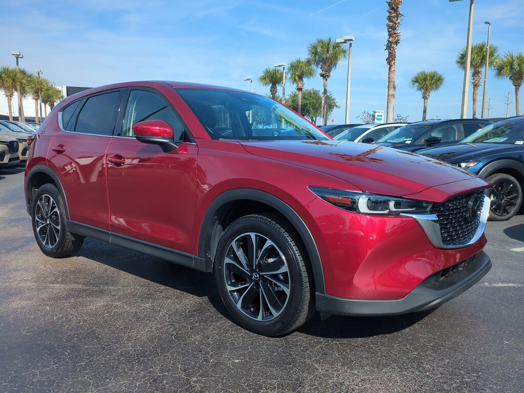 This 2023 Mazda CX-5 features 10 Speakers, 4-Wheel Disc Brakes, 4.624 Axle Ratio, ABS brakes, Air Conditioning, All-Weather Floor Mats, Alloy wheels, AM/FM radio: SiriusXM, AppLink/Apple CarPlay and Android Auto, Auto High-beam Headlights, Auto-dimming Rear-View mirror, Automatic temperature control, Black Lug Nuts & Black Wheel Locks, Brake assist, Bumpers: body-color, Delay-off headlights, Driver door bin, Driver vanity mirror, Dual front impact airbags, Dual front side impact airbags, E911 Automatic Emergency Notification, Electronic Stability Control, Emergency communication system: MAZDA CONNECT, Exterior Parking Camera Rear, Four wheel independent suspension, Front anti-roll bar, Front Bucket Seats, Front Center Armrest w/Storage, Front dual zone A/C, Front reading lights, Fully automatic headlights, Garage door transmitter: HomeLink, Heated door mirrors, Heated Front Bucket Seats, Heated front seats, Illuminated entry, Infotainment System Voice Command, Leather Seat Trim, Leather Shift Knob, Low tire pressure warning, Memory seat, Multifunction Commander Control, Occupant sensing airbag, Outside temperature display, Overhead airbag, Overhead console, Pandora, Panic alarm, Passenger door bin, Passenger vanity mirror, Power door mirrors, Power driver seat, Power Liftgate, Power moonroof, Power passenger seat, Power steering, Power windows, Radio Broadcast Data System Program Information, Radio data system, Radio: AM/FM/HD Audio System, Rain sensing wipers, Rear anti-roll bar, Rear Bumper Guard, Rear reading lights, Rear seat center armrest, Rear window defroster, Rear window wiper, Remote keyless entry, SMS Text Msg Audio Delivery & Reply, Soul Red Crystal Metallic Paint, Speed control, Speed-sensing steering, Split folding rear seat, Spoiler, Steering wheel mounted audio controls, Tachometer, Telescoping steering wheel, Tilt steering wheel, Traction control, Trip computer, Turn signal indicator mirrors, Variably intermittent wipers, and Wheels: 19" x 7J Aluminum Alloy. *Pricing Disclaimer: All prices do not include tax, tag, e-tag fee ($389) or dealer fee ($899.50) or dealer add-ons. Pricing includes $1,000 Trade Assist and $1,000 Finance Assist and does not include reconditioning. Customer must trade-in a vehicle to receive $1,000 Trade Assist Credit. Trade Assist credit is provided by this dealership and not all trades qualify for savings. *Financing must be provided by a lender using this dealership's assistance to receive the $1,000 Finance Assist Credit. See Dealer for complete details. All of our vehicles are ASE Certified inspected so you can buy with confidence from Daytona Mazda. Proudly serving Daytona Beach, Palm Coast, Port Orange, Deland, Deltona and beyond, there are numerous reasons to choose Daytona Mazda.