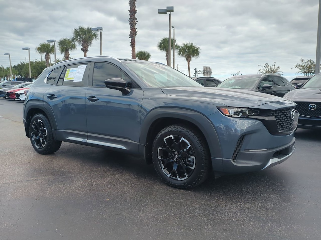 This 2023 Mazda CX-50 features 3.841 Axle Ratio, 4-Wheel Disc Brakes, 8 Speakers, ABS brakes, Air Conditioning, Alloy wheels, AM/FM radio, AppLink/Apple CarPlay and Android Auto, Auto High-beam Headlights, Auto-dimming Rear-View mirror, Automatic temperature control, Brake assist, Bumpers: body-color, Compass, Delay-off headlights, Driver door bin, Driver vanity mirror, Dual front impact airbags, Dual front side impact airbags, Electronic Stability Control, Emergency communication system: MAZDA CONNECT, Exterior Parking Camera Rear, Front anti-roll bar, Front Bucket Seats, Front Center Armrest w/Storage, Front dual zone A/C, Front reading lights, Front wheel independent suspension, Fully automatic headlights, Garage door transmitter: HomeLink, Heated door mirrors, Heated Front Bucket Seats, Heated front seats, Illuminated entry, Knee airbag, Leather Seat Trim, Leather Shift Knob, Leather steering wheel, Low tire pressure warning, Memory seat, Occupant sensing airbag, Outside temperature display, Overhead airbag, Overhead console, Panic alarm, Passenger door bin, Passenger vanity mirror, Polymetal Gray Metallic Paint Charge, Power door mirrors, Power driver seat, Power Liftgate, Power moonroof, Power passenger seat, Power steering, Power windows, Radio data system, Radio: AM/FM/HD Audio System, Rain sensing wipers, Rear seat center armrest, Rear window defroster, Rear window wiper, Remote keyless entry, Speed control, Speed-sensing steering, Split folding rear seat, Spoiler, Steering wheel mounted audio controls, Tachometer, Telescoping steering wheel, Tilt steering wheel, Traction control, Trip computer, Turn signal indicator mirrors, Variably intermittent wipers, and Wheels: 18" x 8J Aluminum Alloy. *Pricing Disclaimer: All prices do not include tax, tag, e-tag fee ($389) or dealer fee ($899.50) or dealer add-ons. Pricing includes $1,000 Trade Assist and $1,000 Finance Assist and does not include reconditioning. Customer must trade-in a vehicle to receive $1,000 Trade Assist Credit. Trade Assist credit is provided by this dealership and not all trades qualify for savings. *Financing must be provided by a lender using this dealership's assistance to receive the $1,000 Finance Assist Credit. See Dealer for complete details. All of our vehicles are ASE Certified inspected so you can buy with confidence from Daytona Mazda. Proudly serving Daytona Beach, Palm Coast, Port Orange, Deland, Deltona and beyond, there are numerous reasons to choose Daytona Mazda.