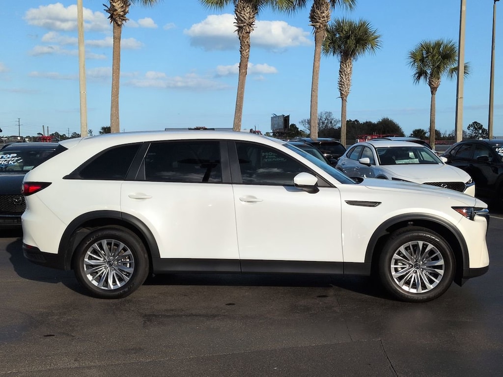 This 2024 Mazda CX-90 features 3.692 Axle Ratio, 3rd row seats: bench, 4-Wheel Disc Brakes, 8 Speakers, ABS brakes, Air Conditioning, Alloy wheels, AM/FM radio, AppLink/Apple CarPlay and Android Auto, Auto High-beam Headlights, Automatic temperature control, Brake assist, Bumpers: body-color, Compass, Delay-off headlights, Driver door bin, Driver vanity mirror, Dual front impact airbags, Dual front side impact airbags, E911 Automatic Emergency Notification, Electronic Stability Control, Emergency communication system: MAZDA CONNECT, Exterior Parking Camera Rear, Four wheel independent suspension, Front anti-roll bar, Front Bucket Seats, Front Center Armrest w/Storage, Front dual zone A/C, Front reading lights, Fully automatic headlights, Heated door mirrors, Illuminated entry, Infotainment System Voice Command, Knee airbag, Leather Shift Knob, Leather steering wheel, Leatherette Seat Trim, Low tire pressure warning, Mazda Connected Services, Occupant sensing airbag, Outside temperature display, Overhead airbag, Overhead console, Pandora Internet Radio Integration, Panic alarm, Passenger door bin, Passenger vanity mirror, Power door mirrors, Power driver seat, Power Liftgate, Power steering, Power windows, Radio Broadcast Data System Program Information, Radio data system, Radio: AM/FM Sound System, Rain sensing wipers, Rear air conditioning, Rear anti-roll bar, Rear reading lights, Rear seat center armrest, Rear window defroster, Rear window wiper, Remote keyless entry, Rhodium White Premium Paint Charge, SMS Text Msg Audio Delivery & Reply, Speed control, Speed-sensing steering, Split folding rear seat, Spoiler, Steering wheel mounted audio controls, Tachometer, Telescoping steering wheel, Tilt steering wheel, Traction control, Trip computer, Turn signal indicator mirrors, Variably intermittent wipers, and Wheels: 19" x 8.5J Aluminum Alloy. *Pricing Disclaimer: All prices do not include tax, tag, e-tag fee ($389) or dealer fee ($899.50) or dealer add-ons. Pricing includes $1,000 Trade Assist and $1,000 Finance Assist and does not include reconditioning. Customer must trade-in a vehicle to receive $1,000 Trade Assist Credit. Trade Assist credit is provided by this dealership and not all trades qualify for savings. *Financing must be provided by a lender using this dealership's assistance to receive the $1,000 Finance Assist Credit. See Dealer for complete details. All of our vehicles are ASE Certified inspected so you can buy with confidence from Daytona Mazda. Proudly serving Daytona Beach, Palm Coast, Port Orange, Deland, Deltona and beyond, there are numerous reasons to choose Daytona Mazda.