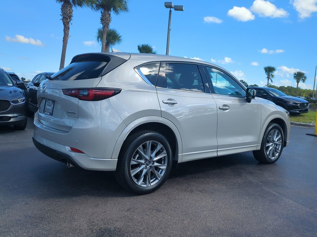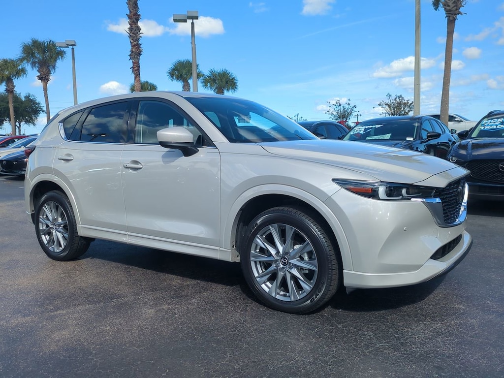 This 2025 Mazda CX-5 features Roof Rails & Cross Bars Package, 10 Speakers, 4-Wheel Disc Brakes, ABS brakes, Air Conditioning, Alloy wheels, AM/FM radio: SiriusXM, AppLink/Apple CarPlay and Android Auto, Auto High-beam Headlights, Auto-dimming Rear-View mirror, Automatic temperature control, Brake assist, Bumpers: body-color, Cargo Tray, Delay-off headlights, Driver door bin, Driver vanity mirror, Dual front impact airbags, Dual front side impact airbags, E911 Automatic Emergency Notification, Electronic Stability Control, Emergency communication system: MAZDA CONNECT, Four wheel independent suspension, Front & Rear Splash Guards, Front anti-roll bar, Front Bucket Seats, Front Center Armrest w/Storage, Front dual zone A/C, Front reading lights, Fully automatic headlights, Garage door transmitter: HomeLink, Heads-Up Display, Heated door mirrors, Heated front seats, Heated rear seats, Heated steering wheel, Heated/Ventilated Front Bucket Seats, Illuminated entry, Infotainment System Voice Command, Leather Seat Trim, Leather Shift Knob, Leather steering wheel, Low tire pressure warning, Memory seat, Multifunction Commander Control, Occupant sensing airbag, Outside temperature display, Overhead airbag, Overhead console, Pandora, Panic alarm, Passenger door bin, Passenger vanity mirror, Power door mirrors, Power driver seat, Power Liftgate, Power moonroof, Power passenger seat, Power steering, Power windows, Radio Broadcast Data System Program Information, Radio data system, Radio: AM/FM/HD Audio System, Rain sensing wipers, Rear anti-roll bar, Rear Bumper Guard, Rear reading lights, Rear seat center armrest, Rear window defroster, Rear window wiper, Remote keyless entry, SMS Text Msg Audio Delivery & Reply, Speed control, Speed-sensing steering, Split folding rear seat, Spoiler, Steering wheel mounted audio controls, Tachometer, Telescoping steering wheel, Tilt steering wheel, Traction control, Trip computer, Turn signal indicator mirrors, Variably intermittent wipers, Ventilated front seats, Wheel Locks, and Wheels: 19" x 7J Aluminum Alloy. *Pricing Disclaimer: All prices do not include tax, tag, e-tag fee ($389) or dealer fee ($899.50) or dealer add-ons. Pricing includes $1,000 Trade Assist and $1,000 Finance Assist and does not include reconditioning. Customer must trade-in a vehicle to receive $1,000 Trade Assist Credit. Trade Assist credit is provided by this dealership and not all trades qualify for savings. *Financing must be provided by a lender using this dealership's assistance to receive the $1,000 Finance Assist Credit. See Dealer for complete details. All of our vehicles are ASE Certified inspected so you can buy with confidence from Daytona Mazda. Proudly serving Daytona Beach, Palm Coast, Port Orange, Deland, Deltona and beyond, there are numerous reasons to choose Daytona Mazda.