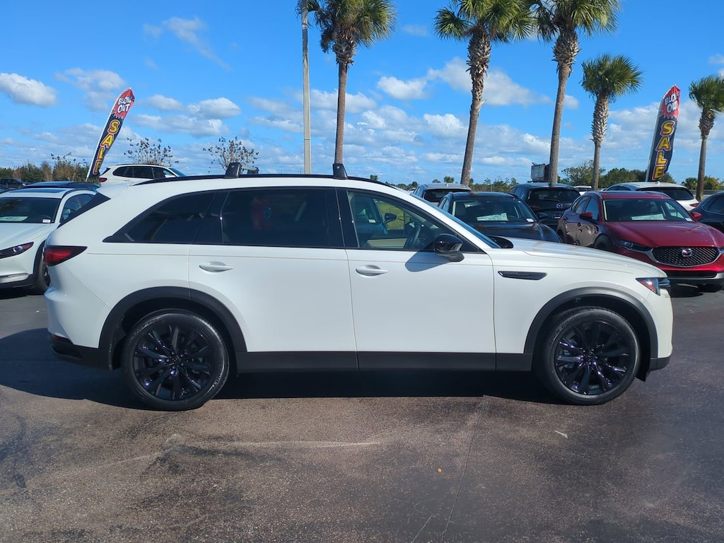This 2026 Mazda CX-90 features 12 Speakers, 3rd row seats: bench, 4-Wheel Disc Brakes, ABS brakes, Air Conditioning, All Weather Floor Mats - Bench Seat, Alloy wheels, AM/FM radio: SiriusXM, Auto High-beam Headlights, Auto-dimming door mirrors, Auto-dimming Rear-View mirror, Automatic temperature control, Black Liftgate Garnish, Brake assist, Bumpers: body-color, Cargo Blocks, Compass, Cross Bars - Silver, Delay-off headlights, Driver door bin, Driver vanity mirror, Dual front impact airbags, Dual front side impact airbags, E911 Automatic Emergency Notification, Electronic Stability Control, Emergency communication system: MAZDA CONNECT, Exterior Parking Camera Rear, First Aid Kit, Four wheel independent suspension, Front anti-roll bar, Front Bucket Seats, Front Center Armrest w/Storage, Front dual zone A/C, Front reading lights, Fully automatic headlights, Garage door transmitter: HomeLink, Heads-Up Display, Heated door mirrors, Heated front seats, Heated rear seats, Heated steering wheel, Heated/Ventilated Front Bucket Seats, Illuminated entry, Infotainment System Voice Command, Knee airbag, Leather Seat Trim, Leather Shift Knob, Leather steering wheel, Low tire pressure warning, Mazda Connected Services, Mazda Online Navigation, Memory seat, Navigation system: MAZDA CONNECT, Occupant sensing airbag, Outside temperature display, Overhead airbag, Overhead console, Panic alarm, Passenger door bin, Passenger vanity mirror, Power door mirrors, Power driver seat, Power Liftgate, Power moonroof, Power passenger seat, Power steering, Power windows, Radio Broadcast Data System Program Information, Radio data system, Radio: AM/FM w/HD/Bose 12-Speaker Sound System, Rain sensing wipers, Rear air conditioning, Rear anti-roll bar, Rear reading lights, Rear seat center armrest, Rear window defroster, Rear window wiper, Remote keyless entry, Rhodium White Premium Paint Charge, Roadside Assistance Kit, SMS Text Msg Audio Delivery & Reply, Speed control, Speed-sensing steering, Split folding rear seat, Spoiler, Steering wheel mounted audio controls, Tachometer, Telescoping steering wheel, Tilt steering wheel, Traction control, Trip computer, Turn signal indicator mirrors, Variably intermittent wipers, Ventilated front seats, and Wheels: 21" x 9.5J Aluminum Alloy w/Black Metal Finish. *Pricing Disclaimer: All prices do not include tax, tag, e-tag fee ($389) or dealer fee ($899.50) or dealer add-ons. Pricing includes $1,000 Trade Assist and $1,000 Finance Assist and does not include reconditioning. Customer must trade-in a vehicle to receive $1,000 Trade Assist Credit. Trade Assist credit is provided by this dealership and not all trades qualify for savings. *Financing must be provided by a lender using this dealership's assistance to receive the $1,000 Finance Assist Credit. See Dealer for complete details. All of our vehicles are ASE Certified inspected so you can buy with confidence from Daytona Mazda. Proudly serving Daytona Beach, Palm Coast, Port Orange, Deland, Deltona and beyond, there are numerous reasons to choose Daytona Mazda.
